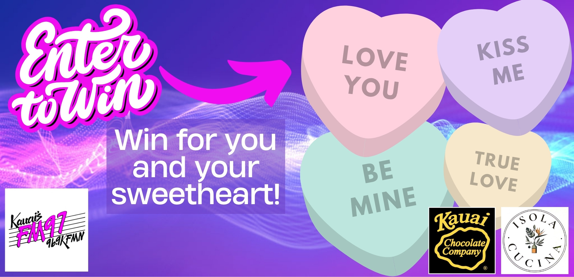 Your Valentine’s Day just got sweeter with FM97! We’re giving you the chance to win prizes for your Valentine including $50 gift cards from Kauaʻi Chocolate Company and $100 gift cards from Isola Cucina Restaurant! Happy Valentine’s Day from Kauai’s FM97!